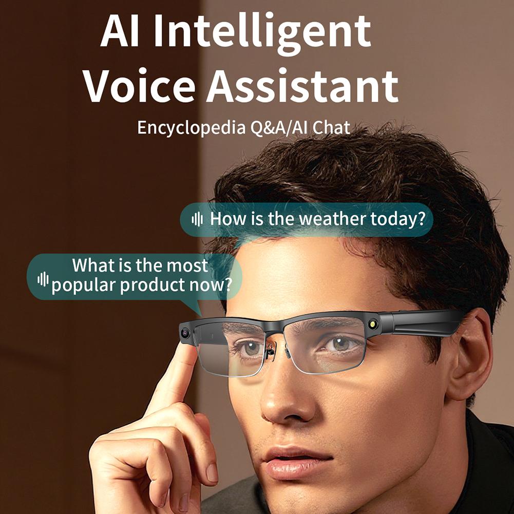 AI Smart Glasses Voice Assistant Translation Glasses Built-in Mic & Speakers Camera Glasses for Travel Meetings Business Use