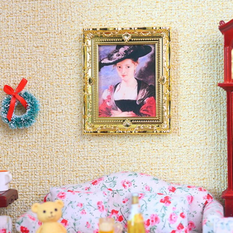 1Pcs Doll House Wall Mural Ornaments 1:12 Scale Dollhouse Oil Painting Vintage Character Landscape Picture Mini Photo Frame