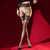 One Piece Kontrastfarbenes Spitzen-Patchwork Strumpfhose 3D Ölglänzende Oberschenkelhohe Strümpfe Damen Sexy Transparent Offener Schritt Strumpfhose