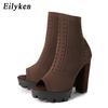 Fashion Eilyken Size 35-42 Breathable Round Hole Knitting Stretch Fabric Ankle Boots Sandals Fashion Peep Toe Thick Bottom Ladies Shoes