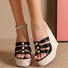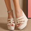 Mode Eilyken Neue Mode Perle Offene Zehenpartie Plateau Keilabsatz Pantoletten Damen Hohe Qualität Gras Rattan Weben Kleid Slide Sommerschuhe