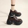 Mode Plateau Schwarze Lederschuhe Damen Herbst Neu Vintage Höhenerhöhung Schnürschuhe Einzelne Schuhe Mode Outdoor Rutschfest Freizeitschuhe