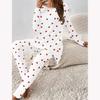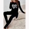 Euroamerikanische Mode 3D Herzsymbol Druck Damen Vier-Jahreszeiten Langarm T-Shirt + Lange Hose Zweiteiliges Set. Perfektes Geschenk zum Valentinstag
