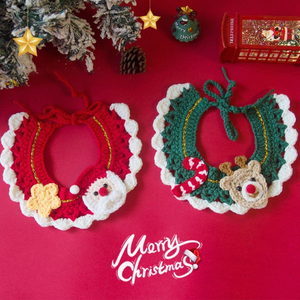 Cute Christmas Pet Collar Cartoon Adjustable Cat Necklace Hand-knitted Safety Puppy Neck Strap Dog
