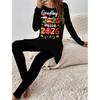 Euro-amerikanische Mode 3D Neujahrsdruck Damen Vier-Jahreszeiten Langarm-T-Shirt + Lange Hose Zweiteiliges Set. Das perfekte Geschenk für Neujahr