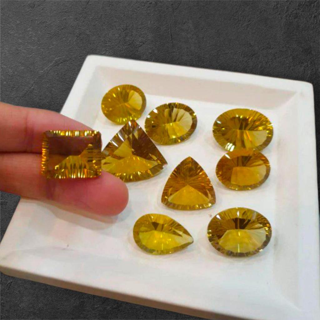 Concave Cut Natural Lemon Quartz Loose Gemstone Lot, Jewelry Making Stones.