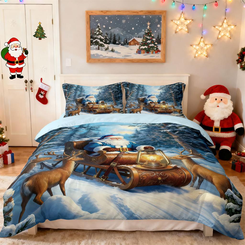 3-teiliges Frohe Weihnachten, Weihnachtsmann bedrucktes chiploses Bettwäscheset, Bettdekoration in mehreren Größen, bequem und maschinenwaschbar