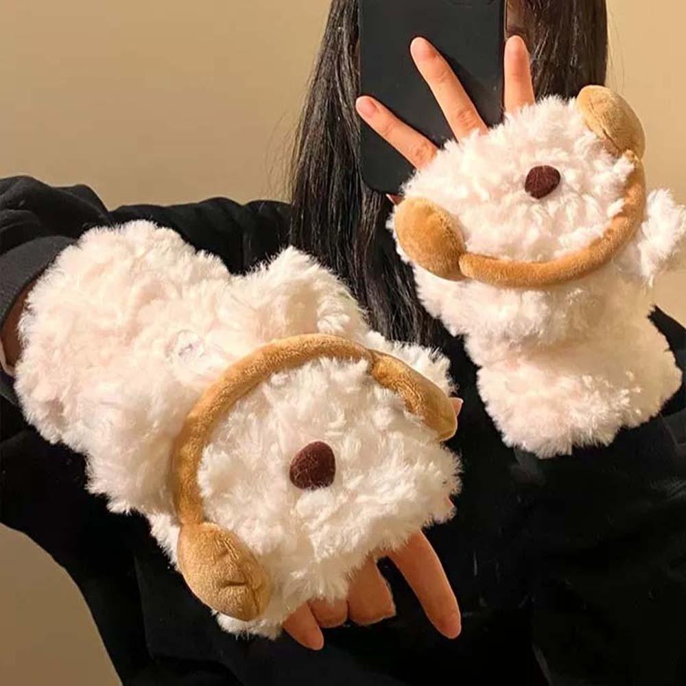 Winddichte Cartoon Bärenhandschuhe Acrylfasern Kälteabweisende Fäustlinge Niedliche Winter Plüschhandschuhe Outdoor