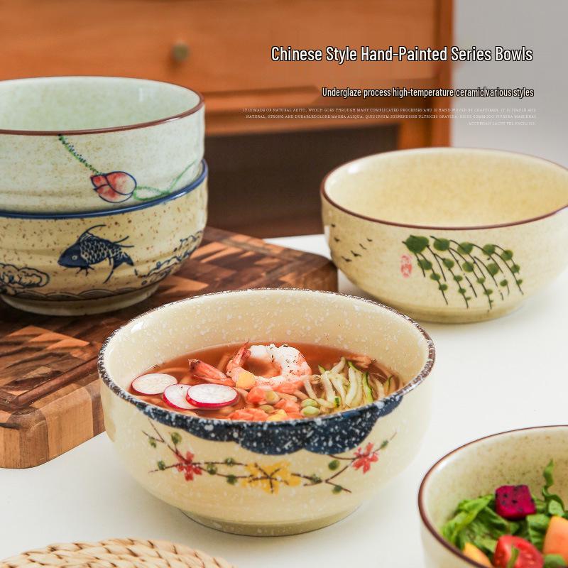 Unterglasur Keramik Reis- & Suppenschüssel Set mit Essstäbchen - Chinesischer Nationalstil Geschirr für Zuhause & Restaurants