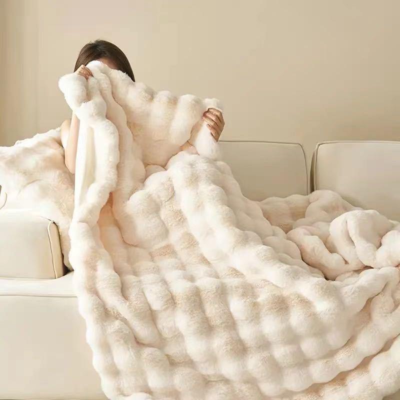 Luxus Doppellagige Kunsthasenfell Fleece-Decke - Weich, Dick, Warm und Leicht; Perfekt für Wohnzimmer, Schlafzimmer oder Sofa.