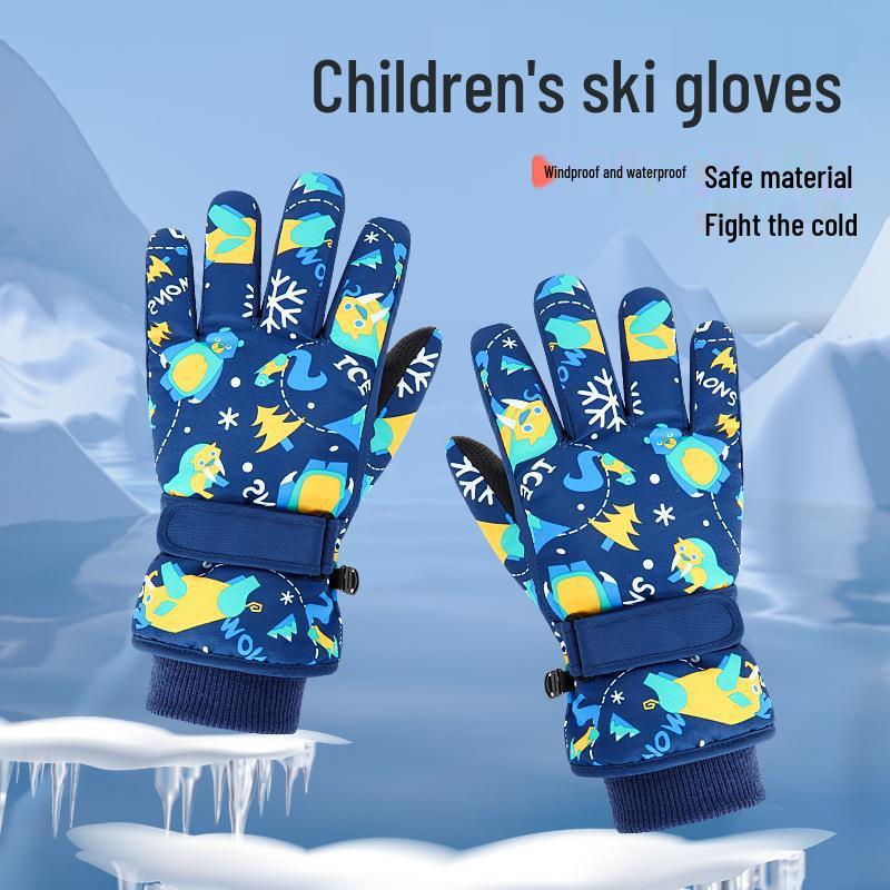 Kinder Winter Skihandschuhe: Warme, Verdickte, Cartoon-Design, Fünffingerhandschuhe für Jungen und Mädchen.
