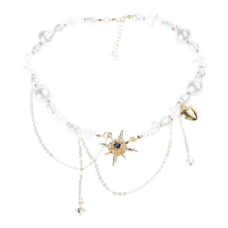 Octagram Necklace Trendy Short Collar Chain Lightweight Alloy Jewelry With Faux Pearls Details For Women