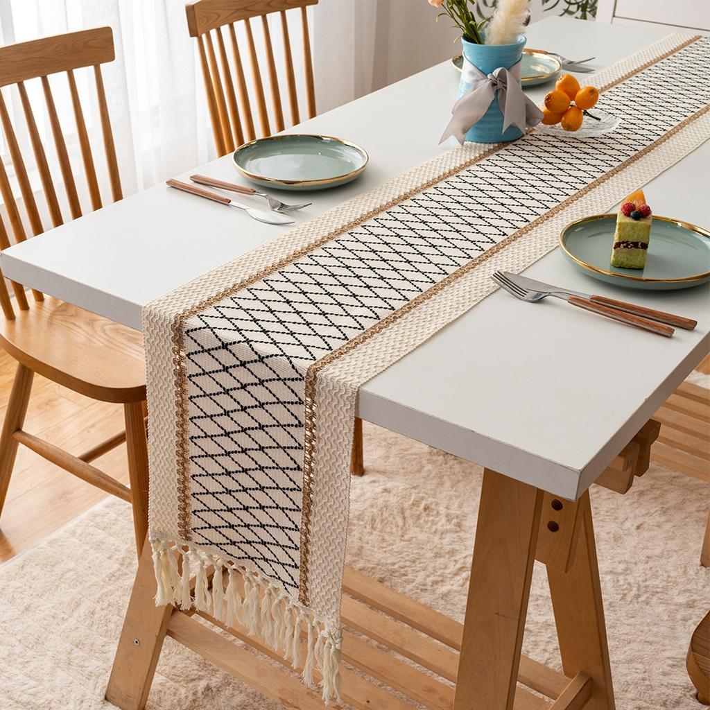 Böhmisch Rustikal Hochzeit Brautparty Abendessen Baumwolle Leinen Tischläufer