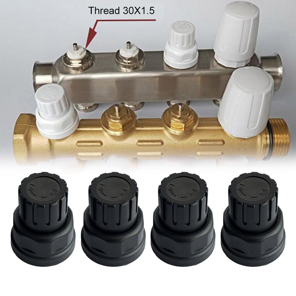 4 Stück Handradschalter Fußbodenheizungsverteiler Zubehör M30x1,5 Schwarz Für Heizkörper Thermostatventil Schutzkappe