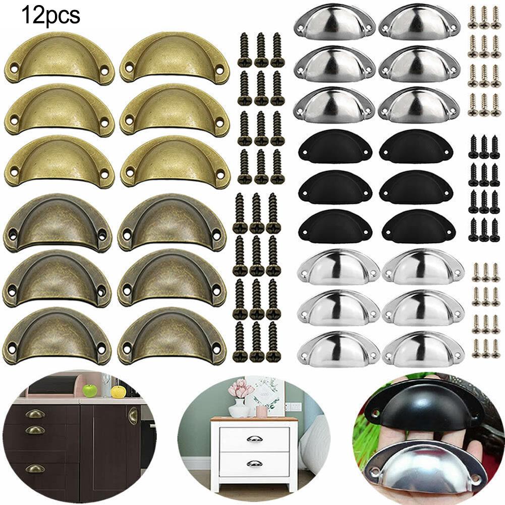 12 Stück Schubladen-Schrankgriffe Muschel-Ziehgriffe Halbmond Küchenschrank Schranktürknöpfe Vintage Schubladenknöpfe Beschläge