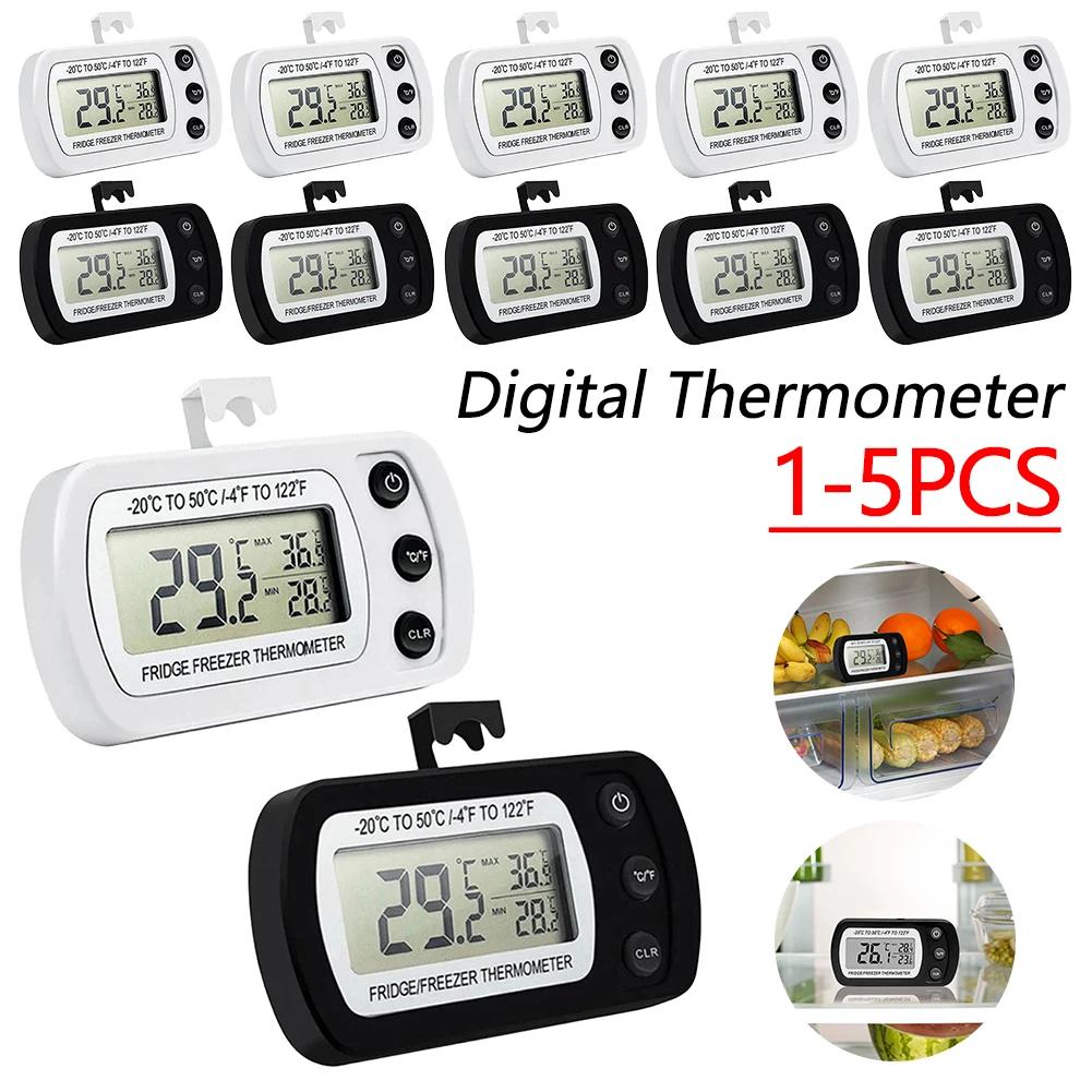 Digitales Kühlschrankthermometer Großes LCD Wasserdicht Kühlschrank Gefrierschrank Thermometer Magnetische Rückseite & Haken für Küche Haushalt Restaurant