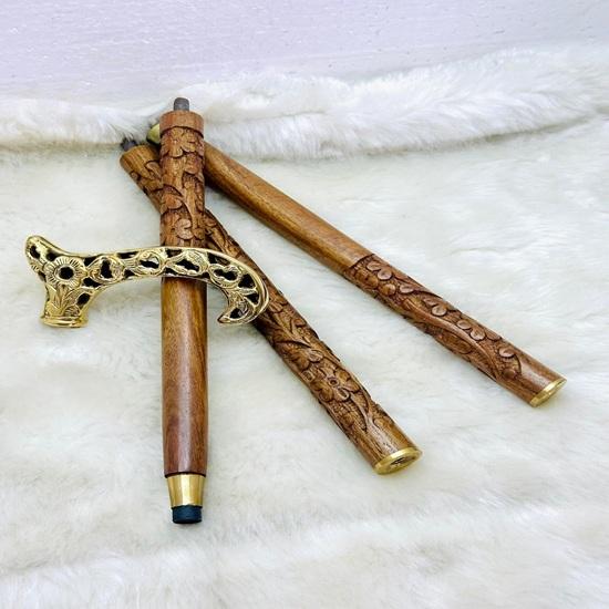 91,44 cm Viktorianischer Gravierter Königlicher Gehstock, Messingblütenkopf mit Holzgraviertem Gehstock, Geschenke für Ihn, Weihnachtsgeschenk