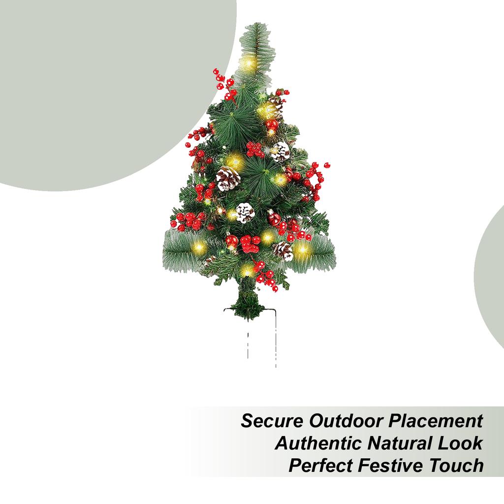 LED Christmas Tree 23.6 Inch With Stake Red Berry Pine Cone Holiday Decor Fake Christmas Tree Yard Garden Patio Entryway Pathway