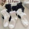 6 Pairs Woman Socks Solid Black White Lolita Lacework Ruffle Socks Summer Thin Japanese Style Kawaii Sweet Girls Short Socks