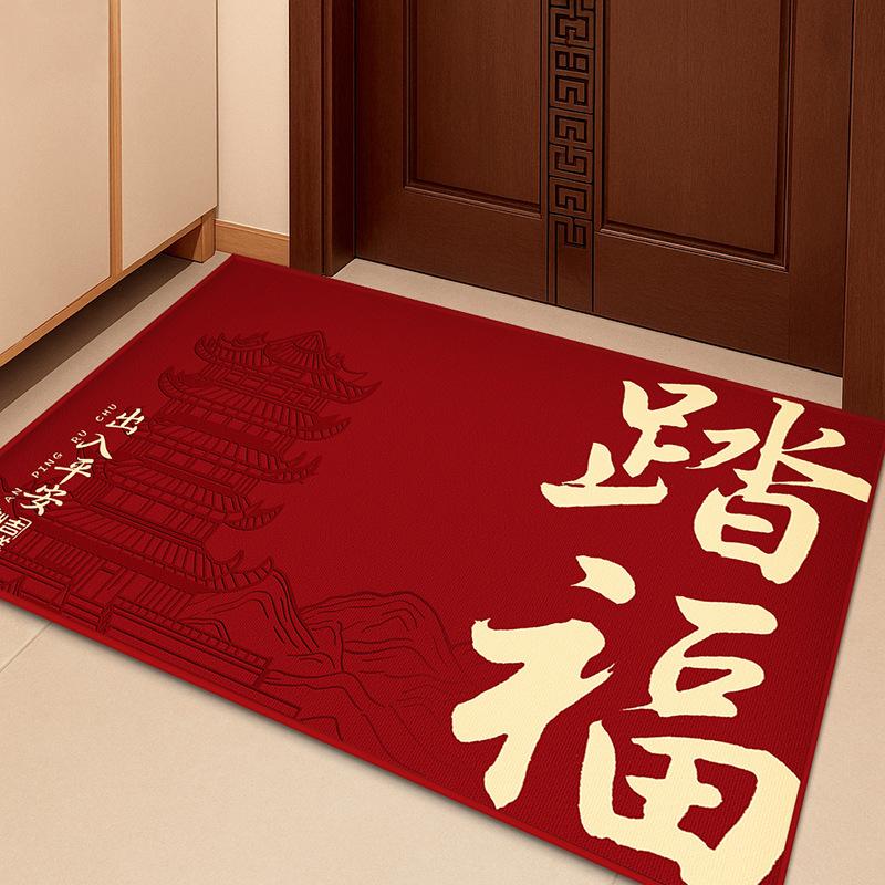 Neue Fußmatte für Eingangstüren im chinesischen Stil, Veranda rutschfest, Wasseraufnahme und verschleißfestes Kristallvelours-Fußmatte, Haushaltstür Staubentfernung