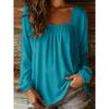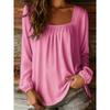 Neuer Damen einfarbiger U-Ausschnitt Pullover Langärmlig Eckiger Kragen Locker Einfaches Oberteil