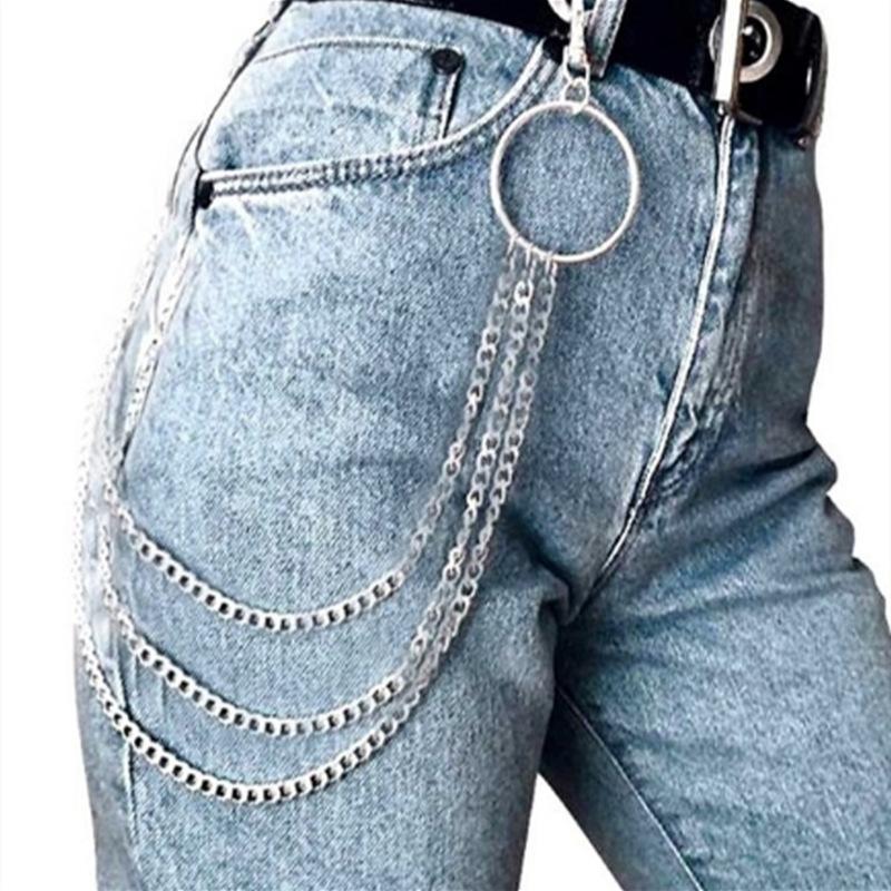 Hip Hop Punk Mode Metall Taillenkette Persönlichkeit Beliebt Jeanskette, Dreifache Schlüsselanhänger Hosenkette