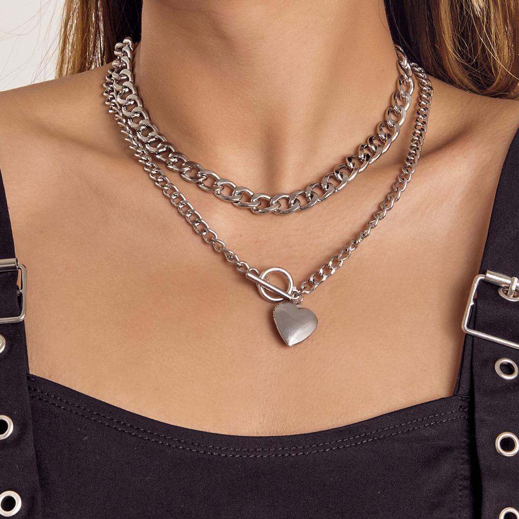 Sweet and cool wind stacked metal collarbone chain necklace, punk OT buckle open love necklace female
