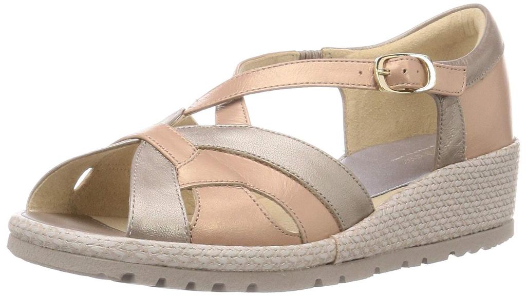 Asics Walking Pedala WC120D Leichte Sandalen mit Absatz, schräg, 4 cm, natürliche Größe 3E, Damen, 3E, Zehenbereich, Absatz, Leder, Nude/Federgrau, 23 cm,