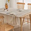 Solid Color Linen Ruffle Edge Tablecloth High-End Khaki Rectangular American Dining Table Mat Fringe Labeling