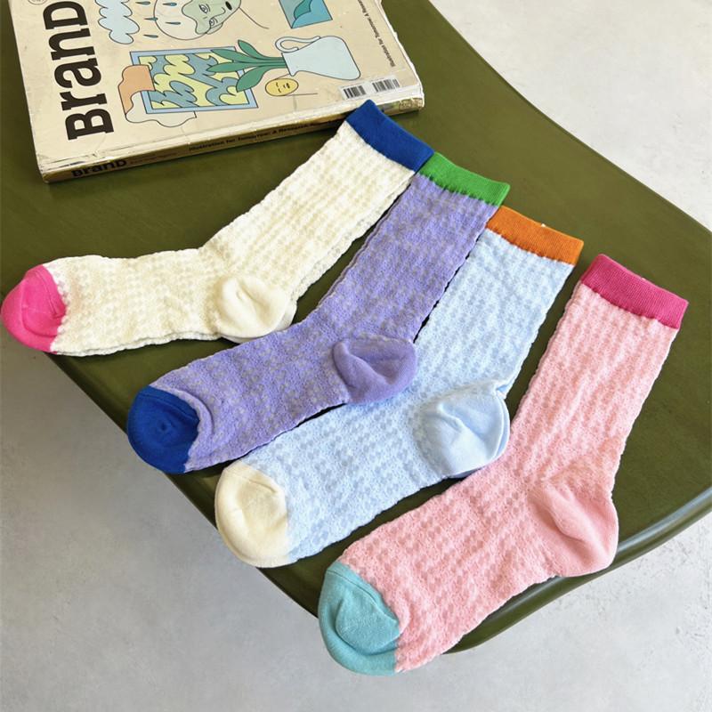 Summer Mesh Hollow Ultra-Thin Socks Color Matching Stained Glass Silk European Trend Internet Celebrity Men'S Tube Socks