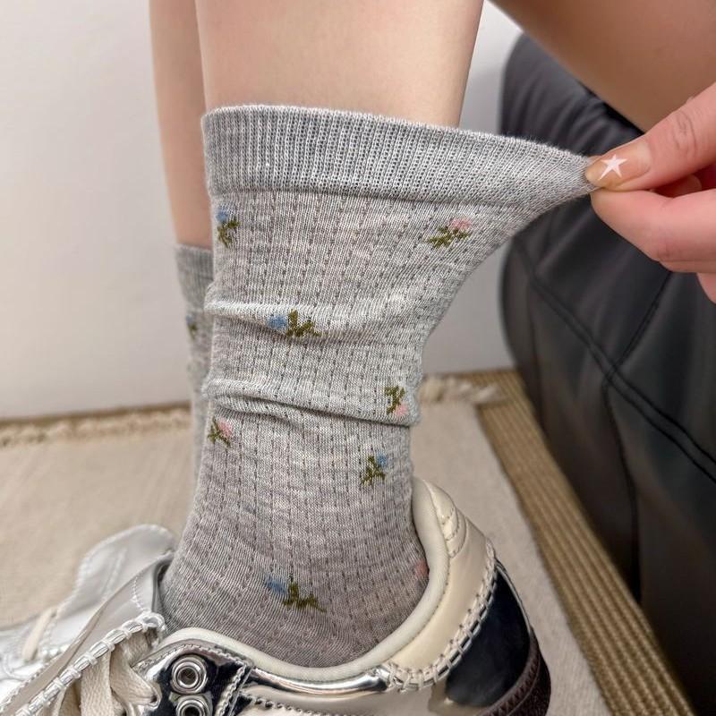 All-in-One Dünne Karte Floral Retro Mittelange Socken Mesh Atmungsaktiv Und Vielseitig Socken