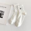 Fungus Edge Love Embroidery Solid Color Vertical Strip Short Socks For Women Versatile Preppy Style Women'S Socks