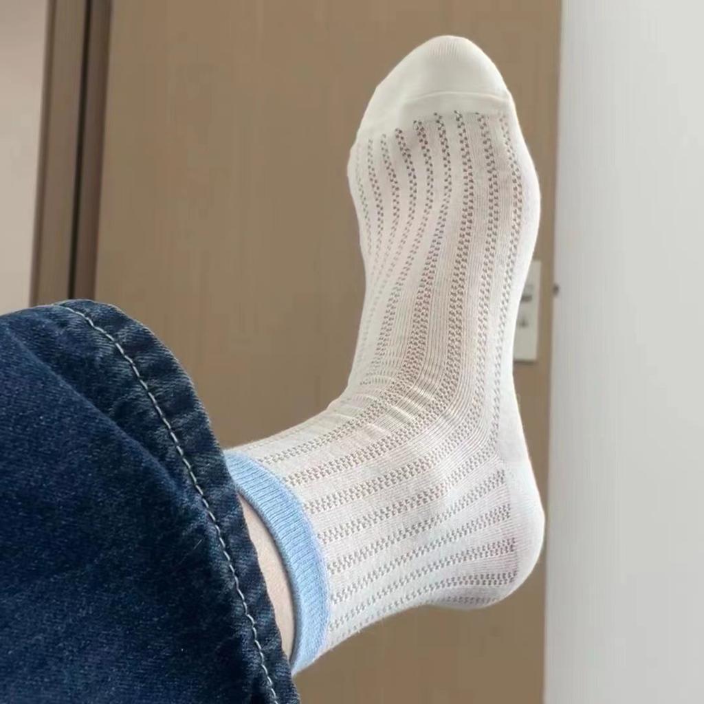 Cream Socks Breathable Medium Tube Socks Xiaohongshu Same Contrasting Color Summer Versatile Stacking Socks