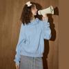 Coolhut Blue Knitwear Versatile Petal Collar Jacquard Atmosphere Loose New Style Winter Women's Sweater