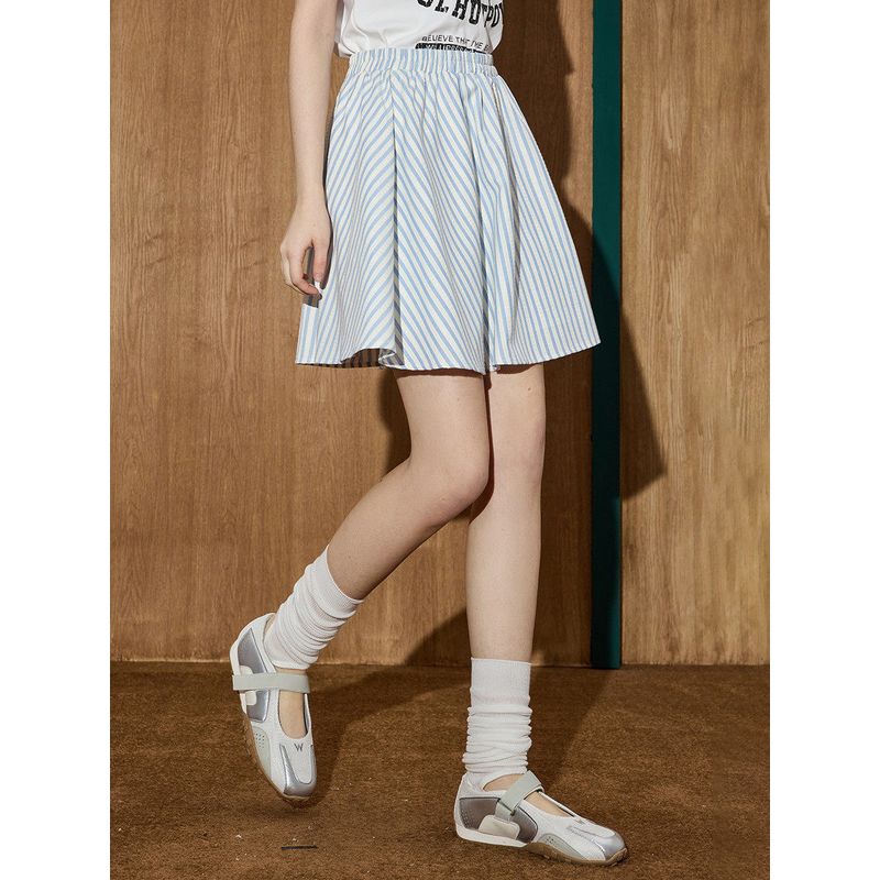 Coolhut Preppy Style Vertical Striped High-Waisted Slimming Short Skirt Versatile Casual 2025 Summer A-Line Slimming Skirt