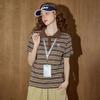 Coolhut American Retro Stripesd Preppy Style Casual Short-Sleeved T-Shirt for Women 2025 Summer New Style Polo Shirt Top