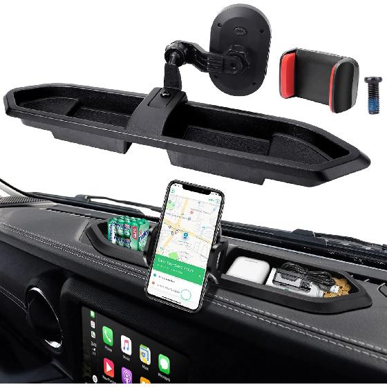 Upgraded Phone Mount For 2018 Jeep Wrangler JL JLU & Gladiator JT, Multi-Mount Phone Holder Dash Tray System Kit With Extension Arm Metal Rod