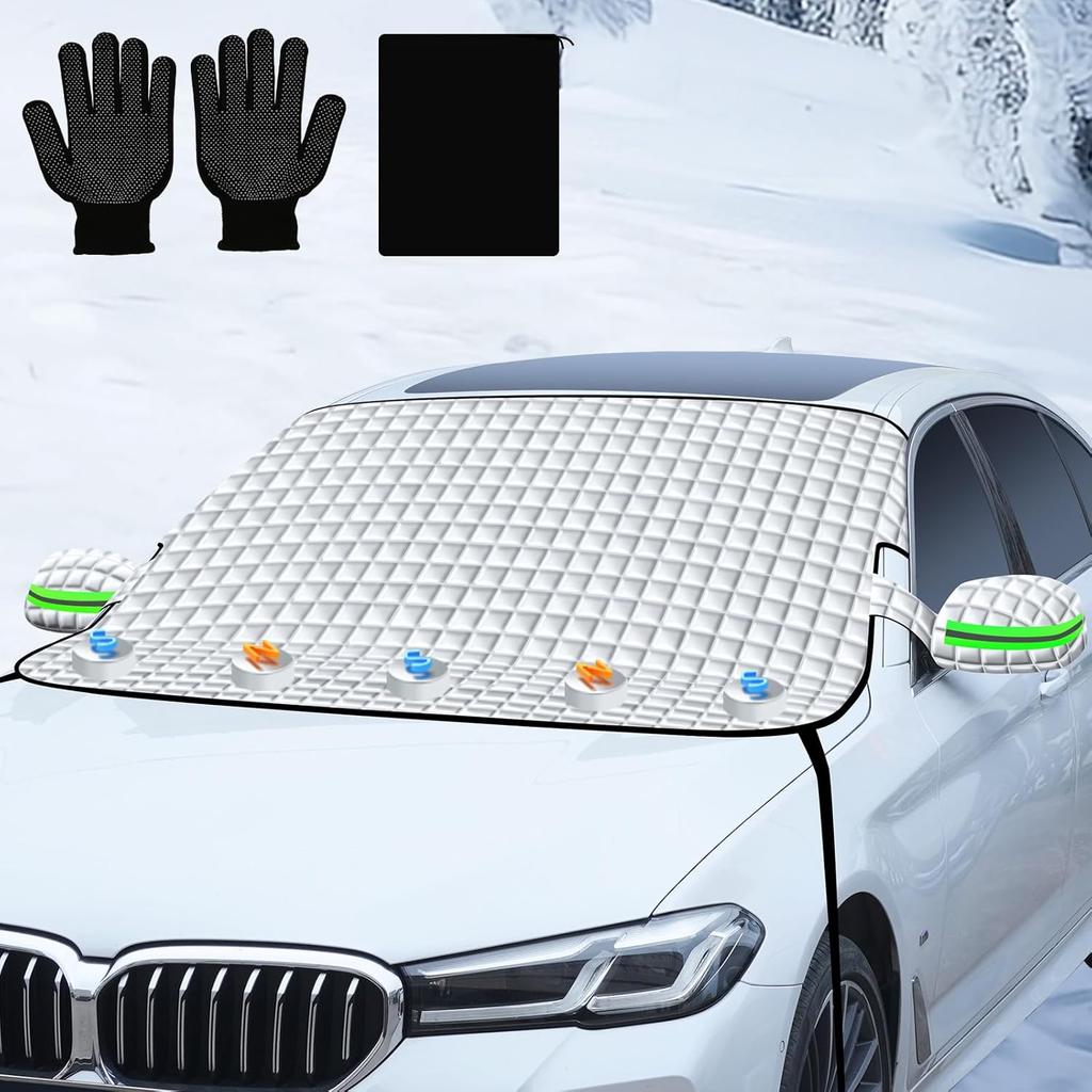 Windshield Snow Cover For Car, Heavy Duty Ice Shield With Magnetic Edges, Waterproof UV Block Sunshade For Winter Frost Protection, Fits Most Sedans