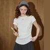Coolhut Off-Shoulder Waist-Cinching Slimming Pleated Design Round Neck Short-Sleeved Top 2025 Summer New T-Shirt for Women