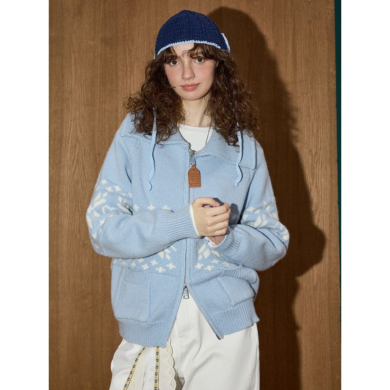 Coolhut Blue Heart Chunky Knit Fair Isle Style Cardigan Winter New Thick Sweater Coat for Women