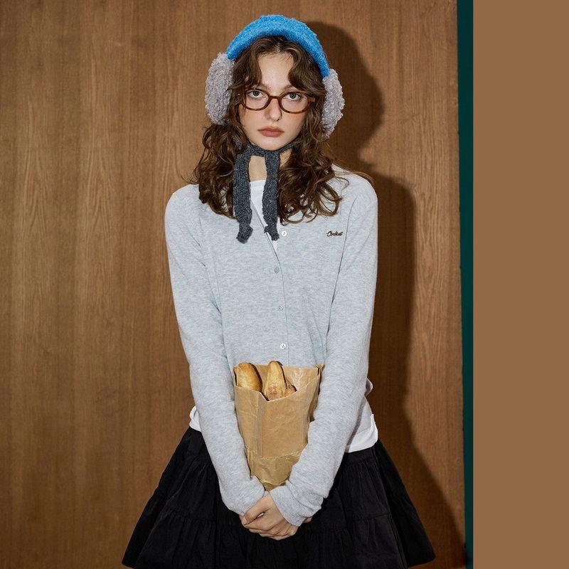 Coolhut Solid Color Button Design Slimming Loose Versatile Round Neck Knitted Cardigan Jacket for Women