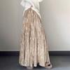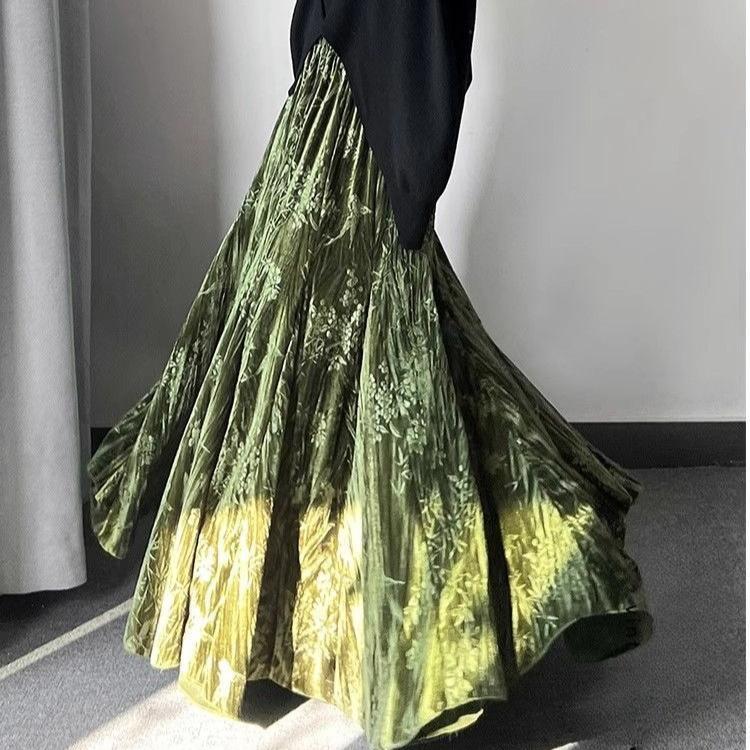 Retro Women's Velvet Long Skirt Printed Velvet Skirt Autumn and Winter Thick Flared A-Line Skirt