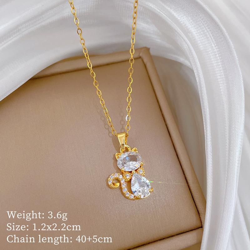 Zircon Cat Fashion Light Luxury Temperament Gorgeous Full Diamond Necklace Female Versatile Collarbone Chain Titanium Steel Chain