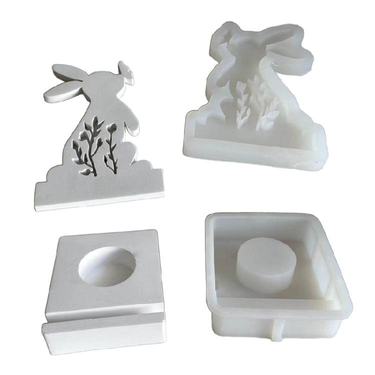 3D Rabbit Candlestick Silicone Mold DIY Easter Rabbit Candle Holder Resin Mould