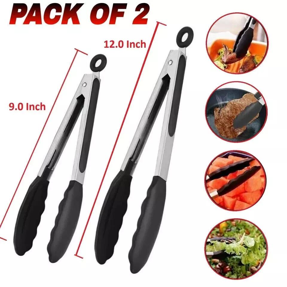Hochwertige 9-Zoll Silikon-Küchenlebensmittelzange Edelstahl Grillzange Rutschfeste Clipklemme BBQ Salat-Servierzange zum Kochen