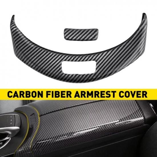 Center Armrest Box Switch Panel Fit Benz C250 C300 C350E 2015- Carbon Fiber