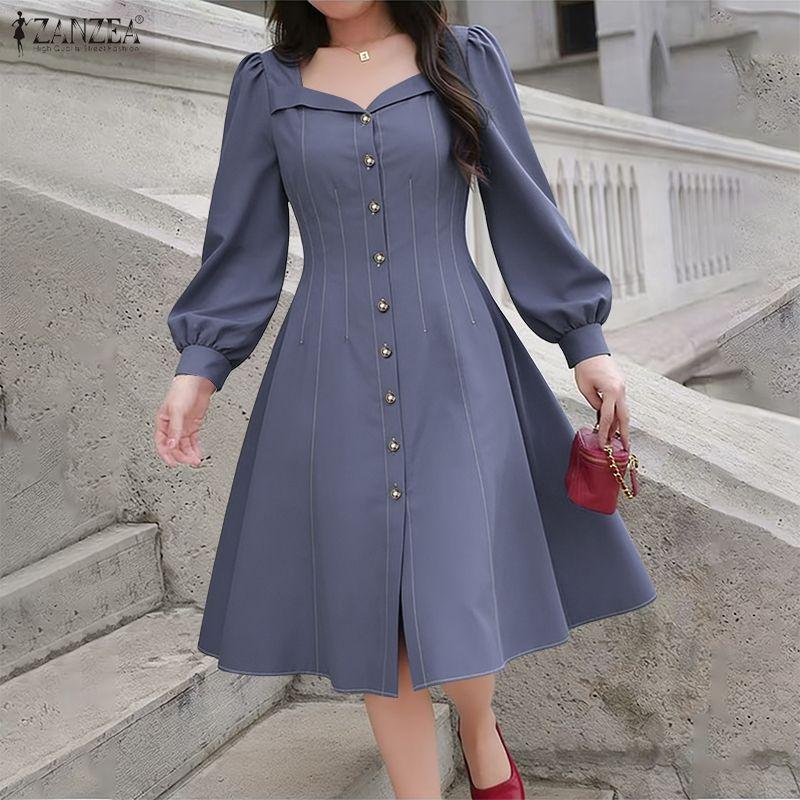 ZANZEA Women Elegant Casual Long Sleeve Dress