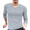 Langärmeliges Slim-Fit Herren-T-Shirt Schrumpffest Einfarbig V-Ausschnitt Unterhemd Pullover-Top