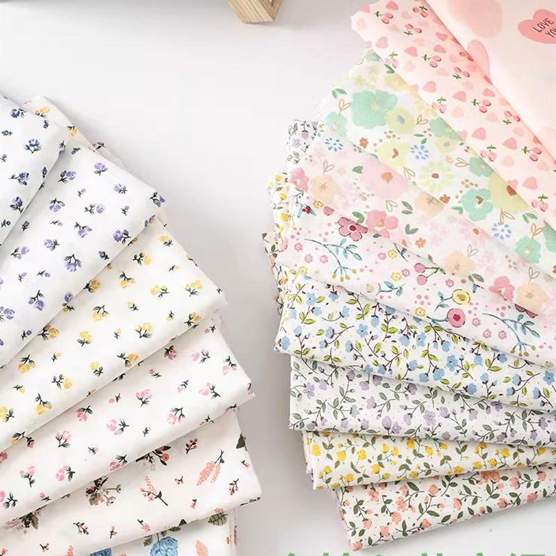 0.5m/2m Rural Style Pure Cotton Small Floral Printed Fabric for Sewing Dresses Decorative Cloth Handmade DIY Clothing Fabrics