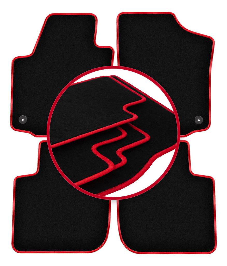 Velours-Fußmatten mit rotem Rand für: Seat Toledo IV Limousine (2012-)